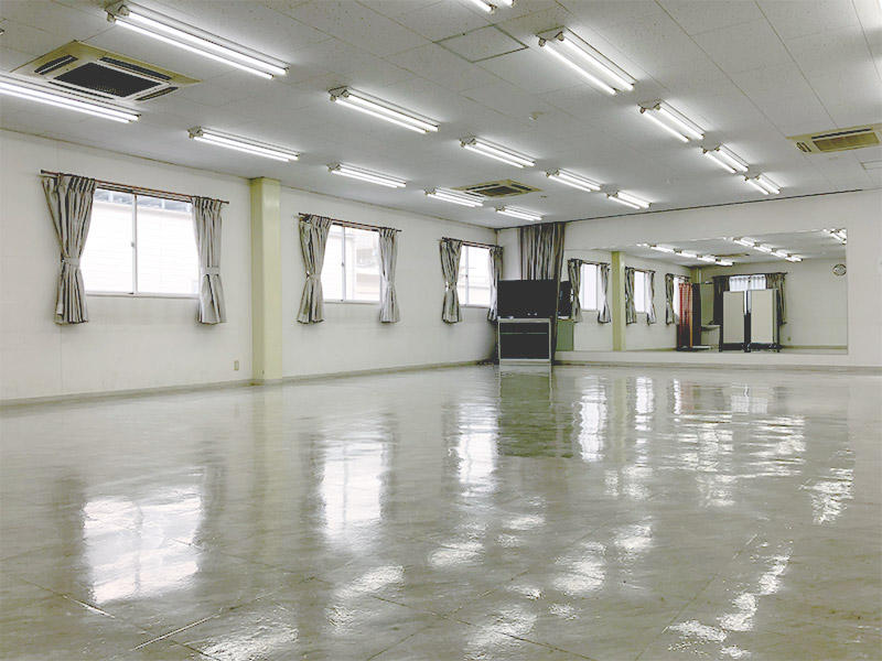 リハーサル室は余裕の122m2。一面の壁に鏡を設置しております。